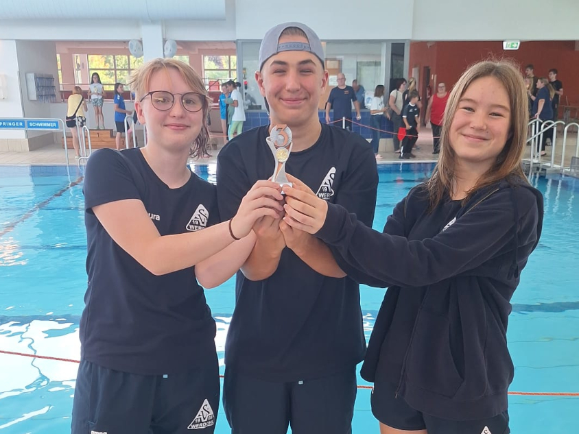 Zum nunmehr 29. Mal richteten am 13.09.2025 die Wasserflöhe Olpe ihr Pannenklöpper Schwimmfest aus. Der SV 08 Werdohl war mit einem kleinen Team von drei Schwimmerinnen und Schwimmern am Start. Dabei waren die sportlichen Ergebnisse mehr als überzeugend: Sieben Gold-, drei Silber- und eine Bronzemedaille sowie einen Jahrgangssiegerpokal und jeweils einen Pokal für die Plätze zwei und drei in der Jahrgangspokalwertung standen am Ende des Wettkampftages zu Buche.