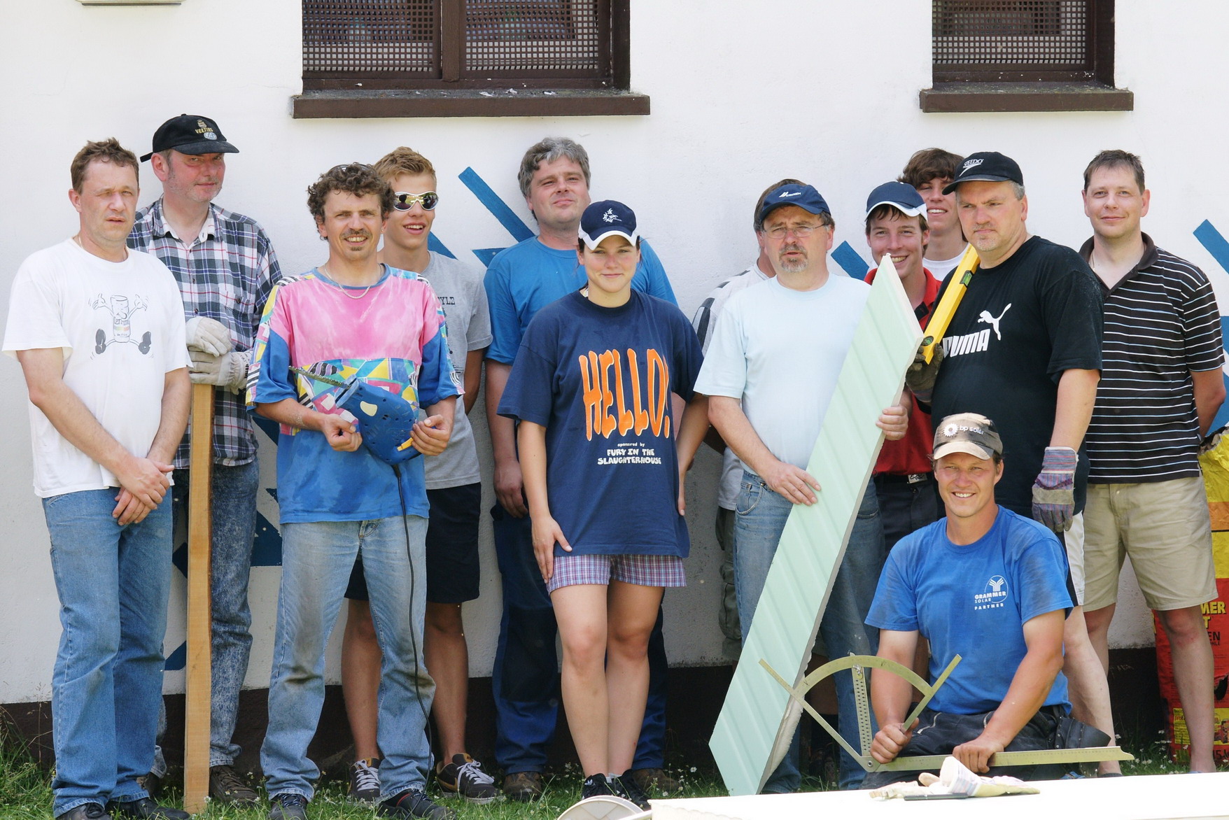 Unter der Anleitung des Dachdeckers Daniel Zenker wurden innerhalb von zwei Tagen die kompletten Dacharbeiten durchgeführt. Tatkräftig unterstützen ihn dabei bis zu 15 Vereinsmitglieder. Dabei wurden zwei Fliegen mit einer Klappe geschlagen. Der neue Dachbelag dämmt zugleich das Gebäude und wirkt so den steigenden Energiekosten entgegen. Es stehen nur noch kleine Restarbeiten an, die dann aber bei angenehmeren Temperaturen durchgeführt werden.