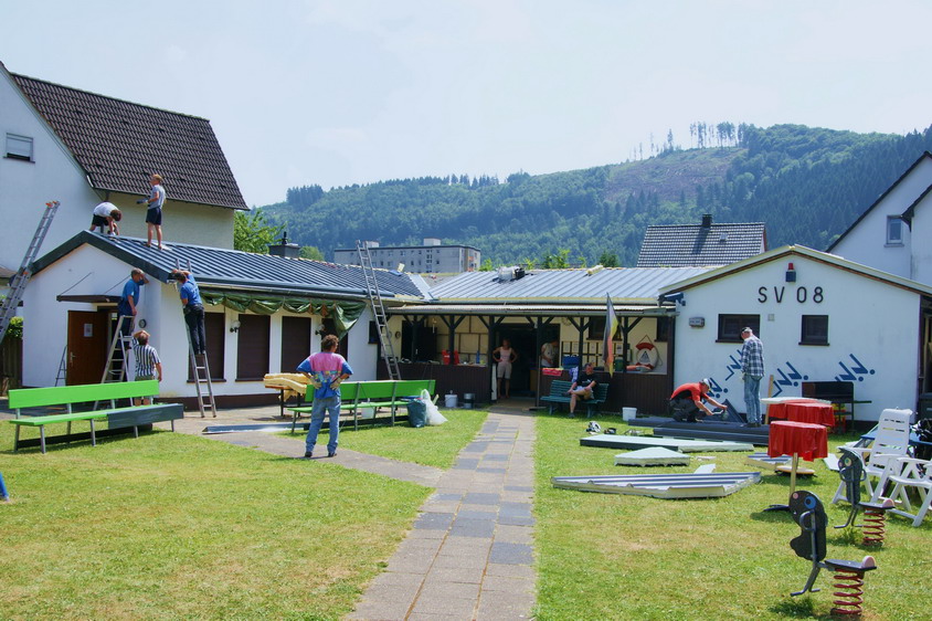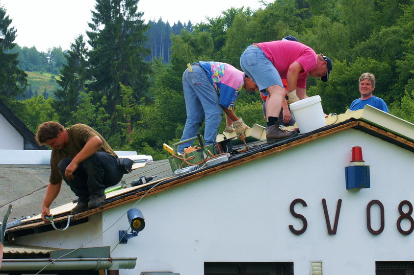 Dacharbeiten am SV 08-Heim bei tropischen Temperaturen
