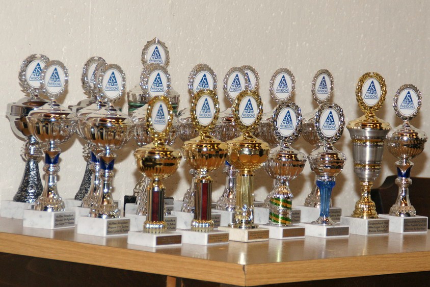 Mit beeindruckenden Zahlen beschrieb Thomas Schürmann als Technischer Leiter das sportliche SV 08-Jahr. Die Wettkampfmannschaft umfasst 56 Aktive, die insgesamt 1.634 Einzelstarts auf 30 Veranstaltungen absolvierten. Und das auch noch recht erfolgreich, den knapp jeder zweite Start wurde mit einer Medaille belohnt - davon war jede 5. sogar eine Goldene. Die Bandbreite seiner aufgezählten Leistungen erstreckte sich von 38 absovierten Schwimmprüfungen des "Seepferdchens" bis hin zum Deutschen Meistertitel der Masters von Raissa Schreiber über 400 m Freistil. Mit Spannung wurden aber die vereinsinternen Pokalwertungen erwartet. Insgesamt 14 Pokale für die besten Leistungen in den Altersgruppen und 7 Pokale für neue Vereinsrekorde bzw. Alterskalssenrekorde durfte Thomas Schürmann vergeben.