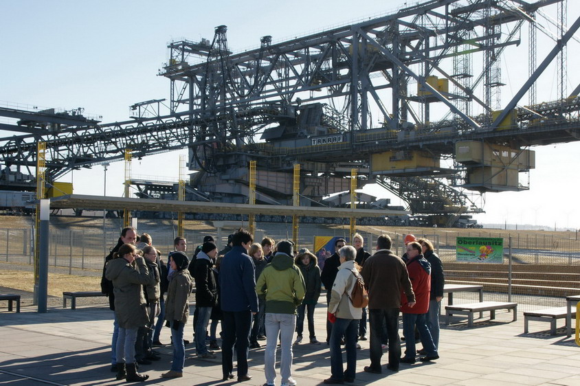 Einen Eindruck von der Region erhielten die Schwimmer bei einer Besichtigung der Abraumförderbrücke F60. Dieses Technikdenkmal steht für den Wandel im ehemaligen Braunkohletagebau in der Niederlausitz zu einem Besucherbergwerk. Und das besondere an dem 502 Meter langen, 202 Meter breiten und 80 Meter hohen Stahlkoloss ist, dass es bei einer Führung begangen werden kann.