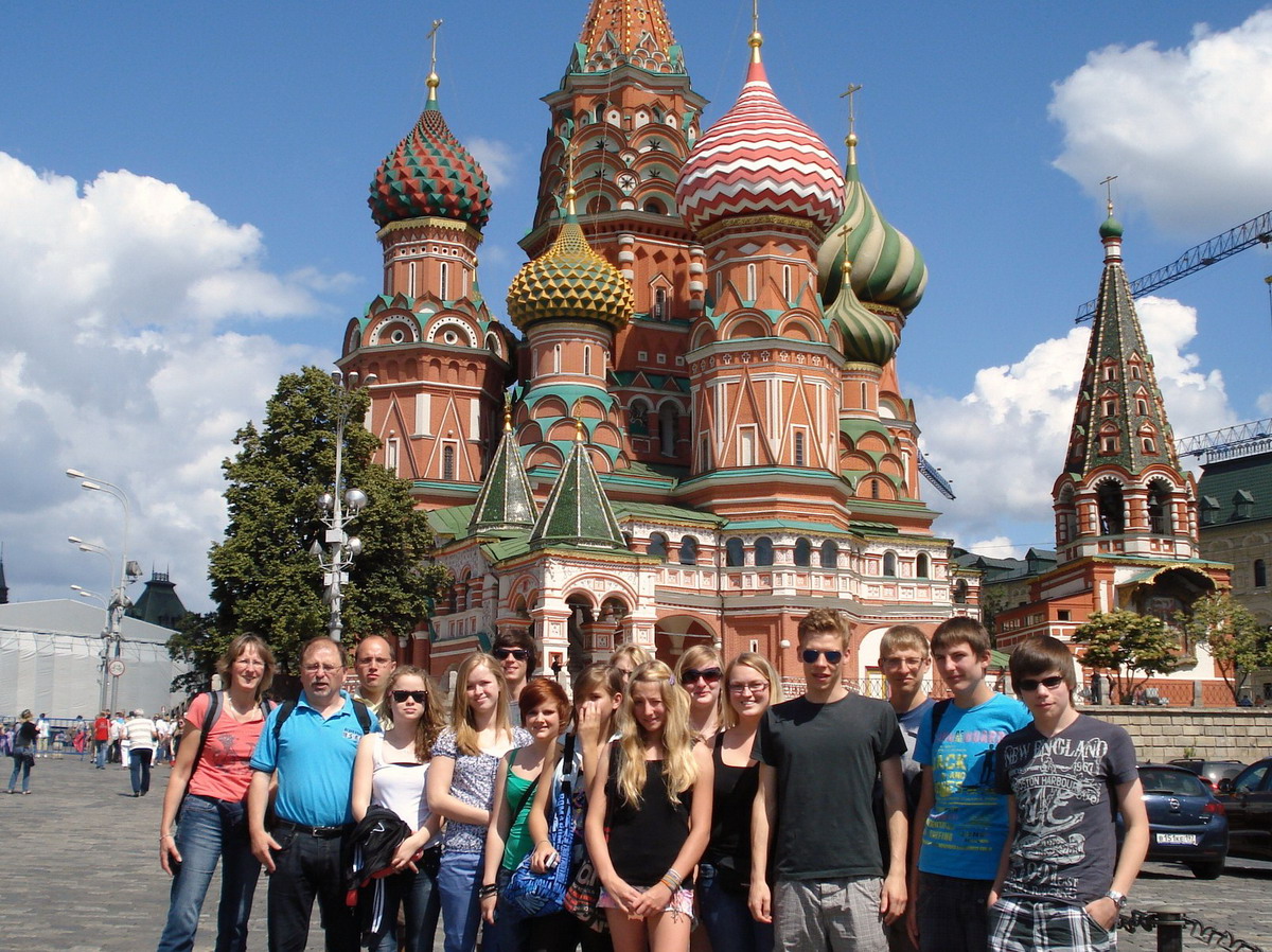 Bei einem riesigen Besichtigungsprogramm bei herrlichstem Wetter wurde alles gesehen, was ein Tourist gesehen haben muss. U.a. posierte die Reisegruppe auf dem Roten Platz in Moskau für ein Erinnerungsfoto. Besichtigt wurden aber auch das Kaufhaus Gum, das Historische Museum und das Lenin-Mausoleum. Die Erwachsenen wurden ins Bolshoi-Theater zur Oper „Eugen Onegin“ mit Musik von Tschaikowski eingeladen und erlebten danach Moskau bei Nacht aus einem Riesenrad.