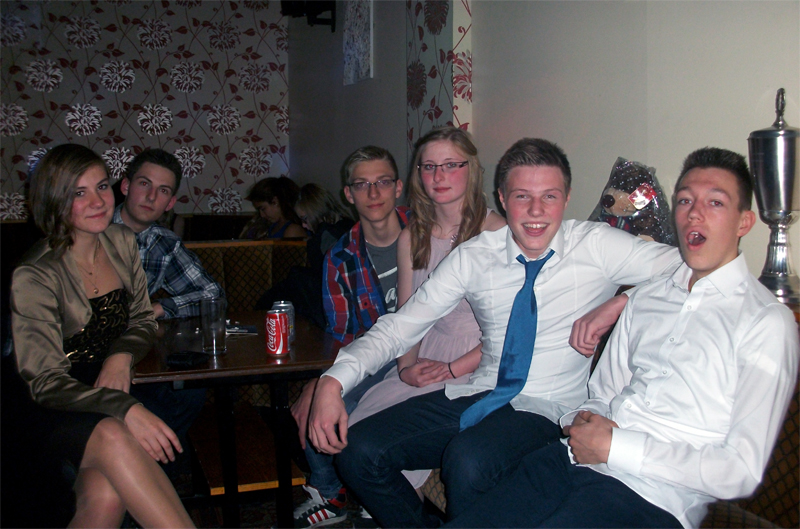 Zum Abschluss der Woche stand noch eine Abschiedsparty an. Während die Jugend die neu gewonnenen Freundschaften zwischen den beiden Vereinen bei Clubmusik feierten, schwelgten die älteren Teilnehmer in Erinnerung an die früheren Zeiten. So machte zum Beispiel ein Zeitungsbericht von 1975 die Runde, in dem von der ersten Schwimmerfahrt berichtet wurde. Ein alter Pokal, der an den Sieger im Clubkampf Werdohl/Derwentside im Jahr 1976 verliehen wurde, ging jetzt an die siegreiche Mädchenstaffel. Er soll zukünftig als Wanderpokal zwischen den beiden Vereinen ausgeschwommen werden. Dazu wird es, so hoffen alle Beteiligten, Gelegenheit im nächsten Jahr in Werdohl geben.