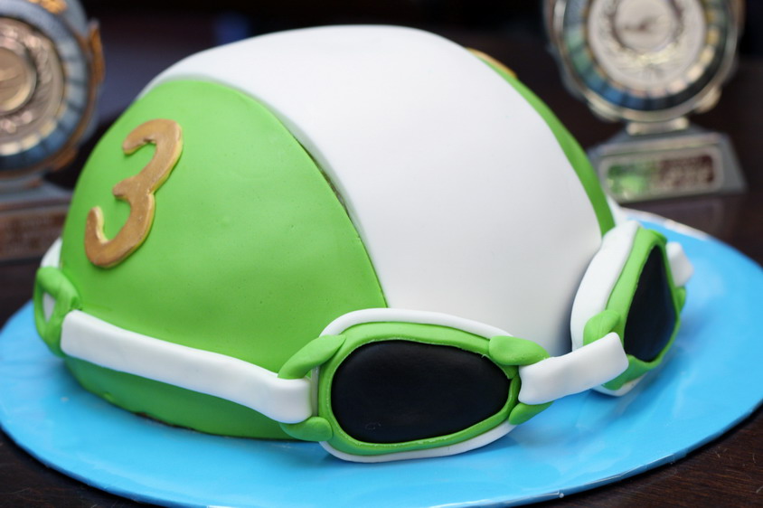 Am Ende des Wettkampftages standen noch die Pyramidenstaffeln an, bei denen es einen Kuchen zu gewinnen gab. Dort belegte der SV 08 den dritten Platz und sicherte sich somit einen der begehrten Kuchen in Form einer Badekappe mit Schwimmbrille.