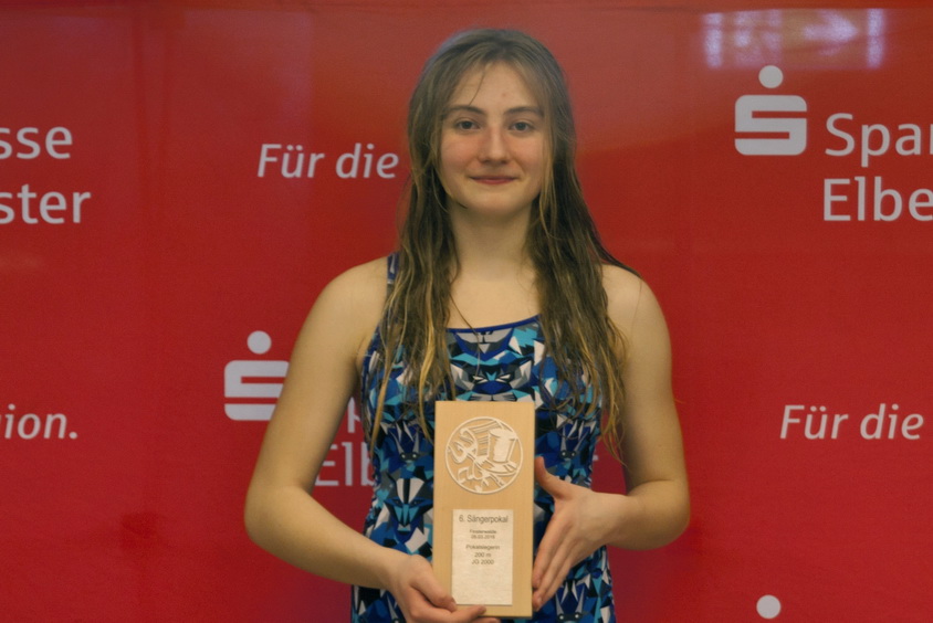 Um einen der begehrten Pokale gewinnen zu können, mussten in den jeweiligen Jahrgangswertungen eine punktbeste Leistung über die jeweiligen 200m Strecken erbracht werden. Mit diesem Ziel ging Jeanine Möglich an den Start. Ihre Rechnung ging auf. Lediglich über 200m Rücken musste sie sich am Ende des Tages mit einer Zeit von 2:45,51 Minuten geschlagen geben. Ansonsten fuhr sie Siege über 200m Brust in 2:59,58 Minuten und über 200m Schmetterling in 2:56,43 Minuten ein. Für den Pokalgewinn schwamm sie im letzten Wettkampf der Veranstaltung die 200m Freistil in einer Zeit von 2:20,86 Minuten.
