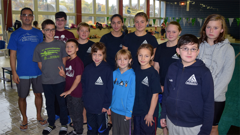 Bereits zum 29. Mal versammelte sich der Schwimmsportnachwuchs zum Balver Treff, der sich wegen der ungewöhnlichen Sportstätte auszeichnet. Da das Schwimmbecken lediglich 16 2/3m lang ist, müssen für die 50m Strecken 3 statt zwei Bahnen absolviert werden. Entsprechend steht auch die kuriose Staffel 6x 33m Freistil auf dem Wettkampfprogramm, die übrigens in diesem Jahr die Werdohler Mannschaft gewinnen konnte. Und das war nicht das einzige Edelmetall für den SV 08. Jeder der insgesamt 33 Sprünge in das nasse Element konnten gegen eine Medaille eingetauscht werden.