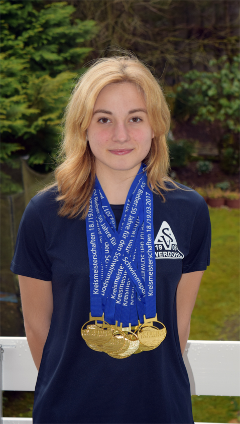 Ähnlich knapp fiel auch das Ergebnis über 100m Freistil bei Alicia Bettermann aus. Mit nur 1/10 Sekunden verpasste sie den Sieg und damit den 4. Kreismeistertitel. Dafür setzte sie sich über 100m Brust in 1:25,04 Minuten und mit 4/10 Sekunden Abstand durch und gewann noch die Wettkämpfe über 100m (1:16,88 Minuten) und 200m Rücken (2:49,74 Minuten).