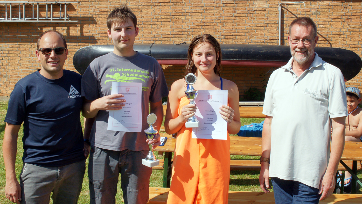 Ihren Stadtmeistertitel aus 2017 verteidigte erfolgreich Jeanine Möglich. Sie konnte über 50m Freistil in der Zeit von 0:29,77 Minuten insgesamt 475 Punkte (im Vorjahr 415 Punkte) auf sich verbuchen. Bei den Herren wurde das Rennen ebenfalls über 50m Freistil entschieden. Dominik Möglich schwamm in der Zeit von 0:27,49 Minuten und erhielt dafür glatte 400 Punkte (395 Punkte im Vorjahr). Auch er konnte damit seinen Titel verteidigen.