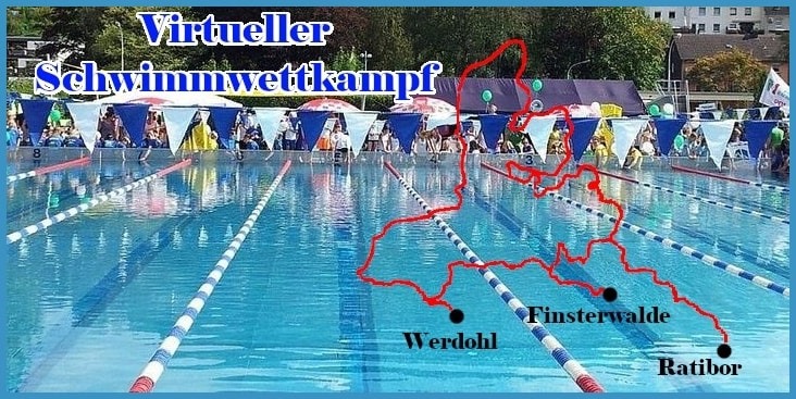Da durch die Pandemie seit einem Jahr keine gegenseitigen Besuche bei den Wettkämpfen in Finsterwalde, Ratibor und bei uns stattfinden konnten, hat sich der Märkischer Kreis etwas besonderes ausgedacht: Ein virtueller Schwimmwettkampf zwischen dem SV Neptun 08 Finsterwalde, dem SV Viktoria Racibórz und uns, dem SV 08 Werdohl! Aufgrund der geschlossenen Bäder natürlich nicht richtig im Wasser, sondern indem Schritte in KM umgewandelt werden. Dabei werden virtuell verschiedene Flüsse beginnend an unserem Vereinsheim nach Finsterwalde, Ratibor und wieder zurück geschwommen.